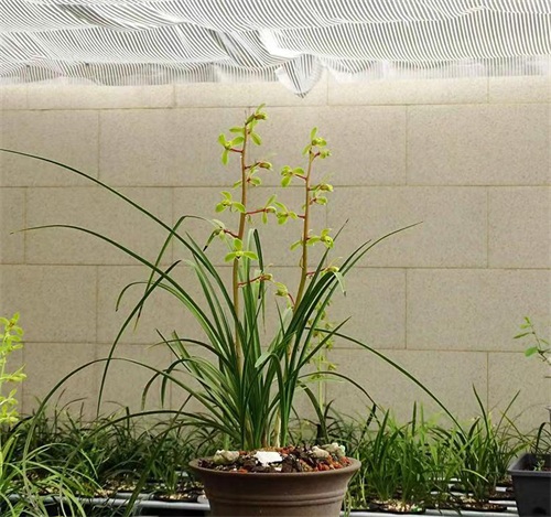 光照对花色,花杆有一定影响,阴养则绿,阳养则赤。程梅发苗率总体不高,但新苗复壮很快,喜阳喜肥。