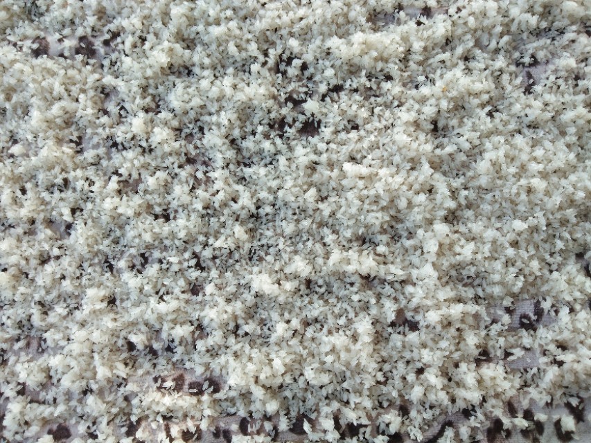 首先要精选糯米,将糯米用水洗净用清水浸泡8一12小时,再将糯米捞起用清水搓洗两次沥干,最后把沥干的糯米放入蒸锅内蒸熟,注意不要蒸得太硬,也不要太软,蒸熟即可。把蒸熟的糯米置于凉晒物(比如农村人用的簸箕)品上冷却,将冷却后糯米用手掰成小团,冷至糯米不沾手时再用手搓散,搓成细粒还原成颗粒,凉晒干无水份后即可贮藏。