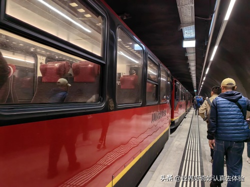 然后再换乘少女峰火车,少女峰铁路是齿轨铁路,全长约7公里,最大坡度高达25%,于1896年动工,施工历时长达16年,才于1912年通车。它有四分之三左右的路段是在冰河底下隧道岩壁里通过,工程十分艰巨。