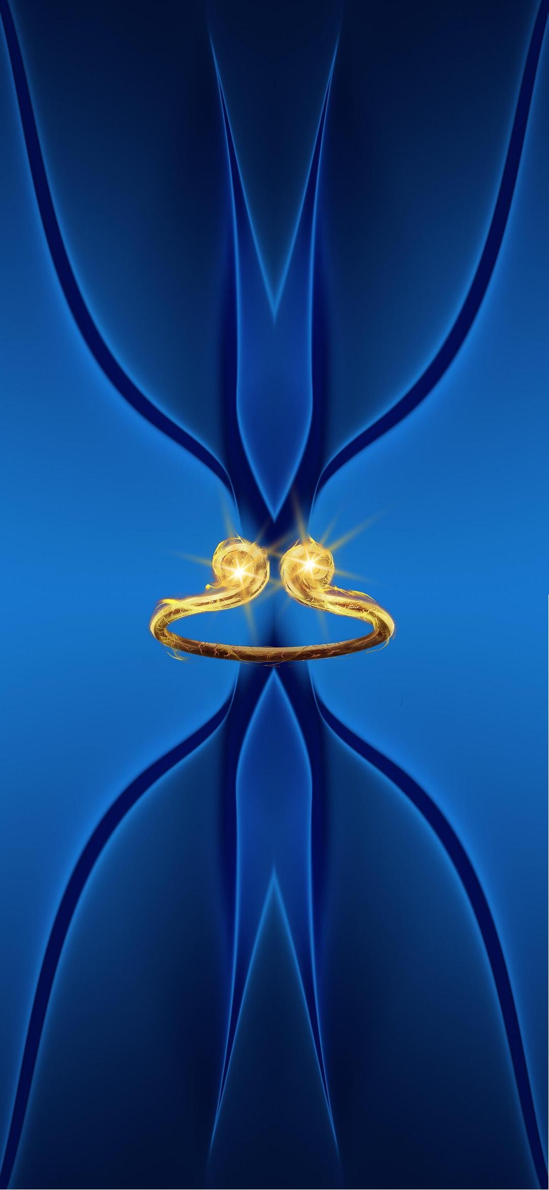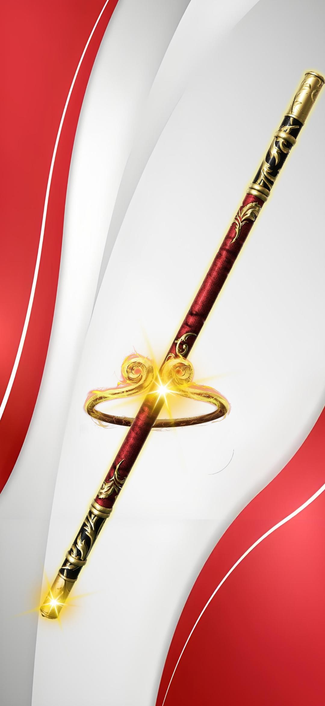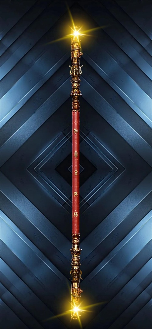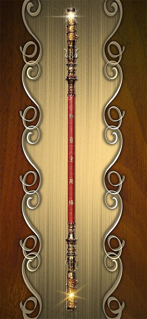 下面这张壁纸,福图一刻用2张图片拼接成背景,中间放置了孙悟空的如意金箍棒,我在金箍棒的两端放置了2个闪光元素。