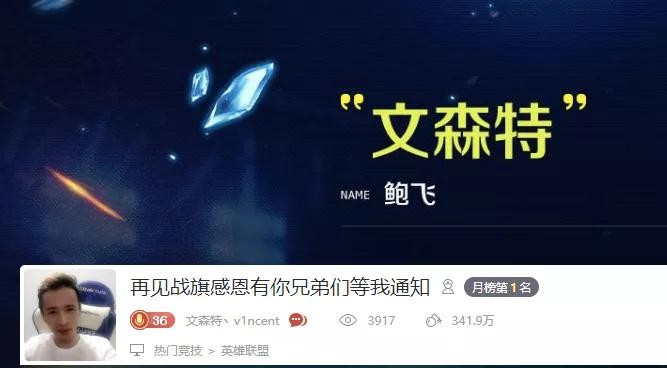 昨天(3月30日),文森特突然在直播时表示:“自己真的很感谢战旗,在这五年时间里也算是互相成就。