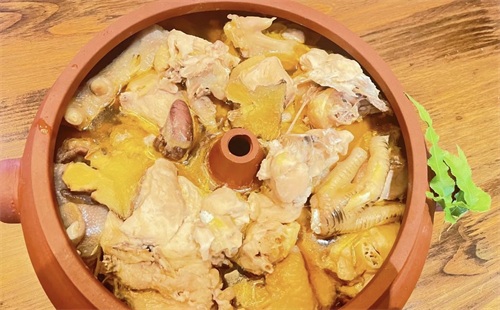 ⑤汽锅鸡:汽锅鸡是云南一道特色名菜,因该菜品用汽锅蒸制而得名,其主要食材是鸡肉,主要烹饪工艺是蒸,有补虚养身、补血、健脾开胃的功效。汽锅鸡因为其营养丰富深受广大群众的喜爱