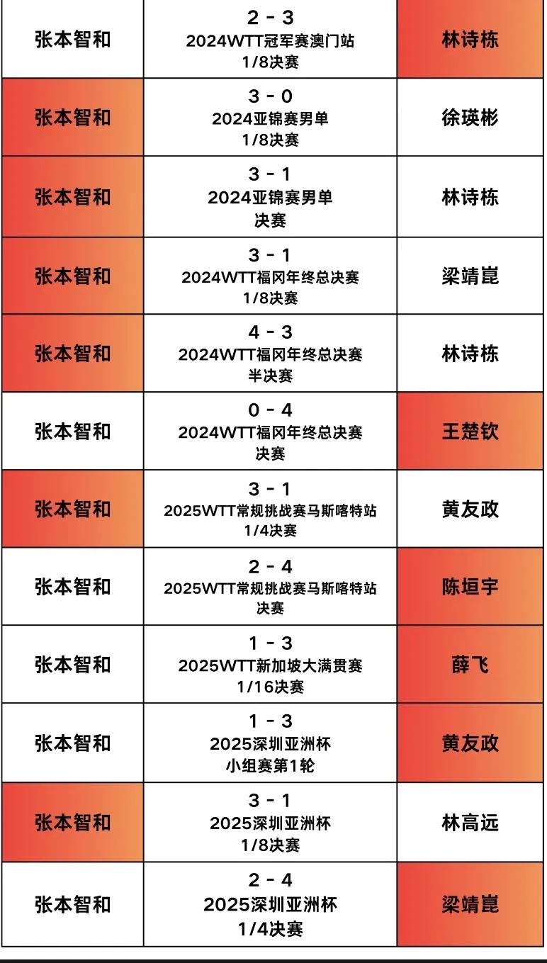 四、争议与瓶颈:器材能否弥补技术短板?尽管张本智和的装备配置堪称顶级,但近期频繁爆冷输给国乒二线选手(如薛飞、黄友政)引发热议:张本依赖器材的暴力输出,但正手力量与国乒选手(如梁靖崑)差距明显,且衔接速度不足,导致关键分易被压制。