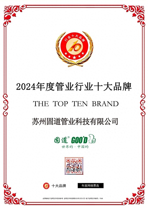 在2024年的行业版图中,固道管业以十大品牌的荣耀为起点,继续以“德国品质、中国智造”为双轮驱动,深耕管道领域,赋能城市发展。未来,我们期待与您携手,用每一寸管道的精密连接,共同编织安全、舒适、可持续的生活图景。因为,真正的好管,不仅要通万家,更要通未来!