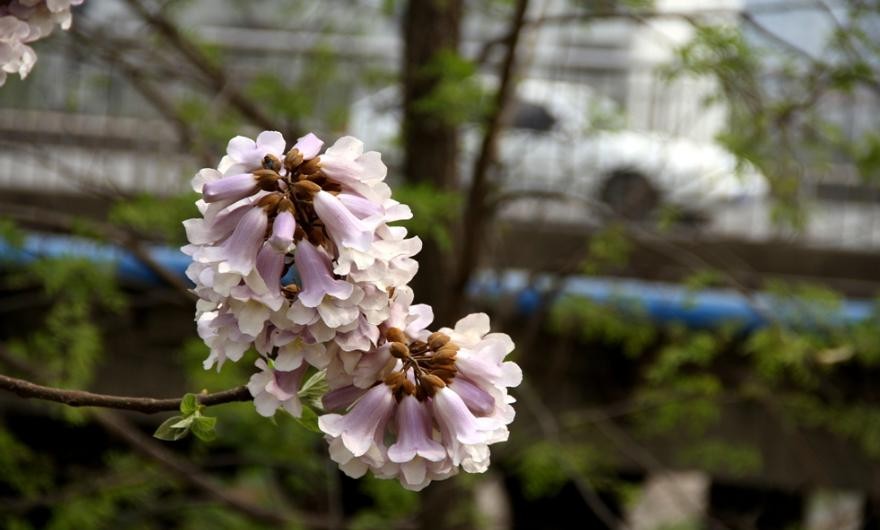 有人说梧桐花是伤感的,它就像是初春的少女容易多愁善感,喜欢独自待在自己的世界,不去打扰任何人,随风而来,随风而散,不留一丝的余香。也有人说梧桐花是寂寞的,它错过了花期的盛典,在繁花尽时,才把花色放开,那白色花间的点红就是它寂寞的积累,什么时候红色淡了,也许它的寂寞也就少了。