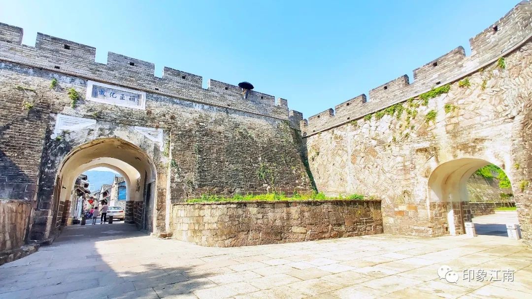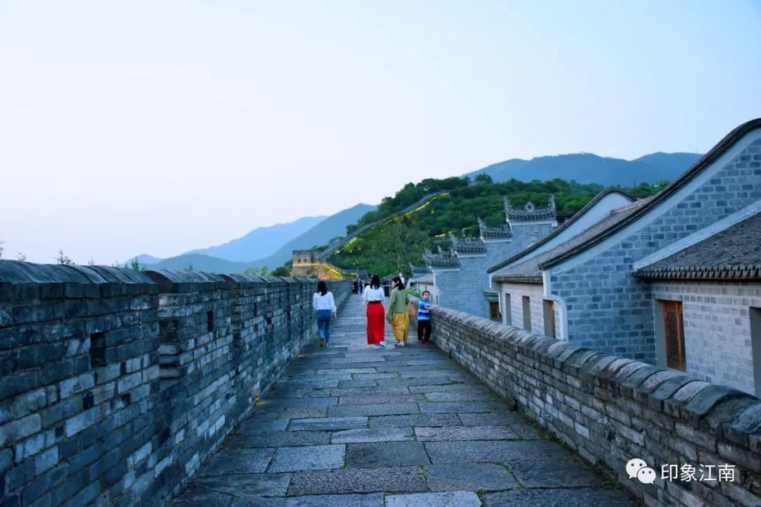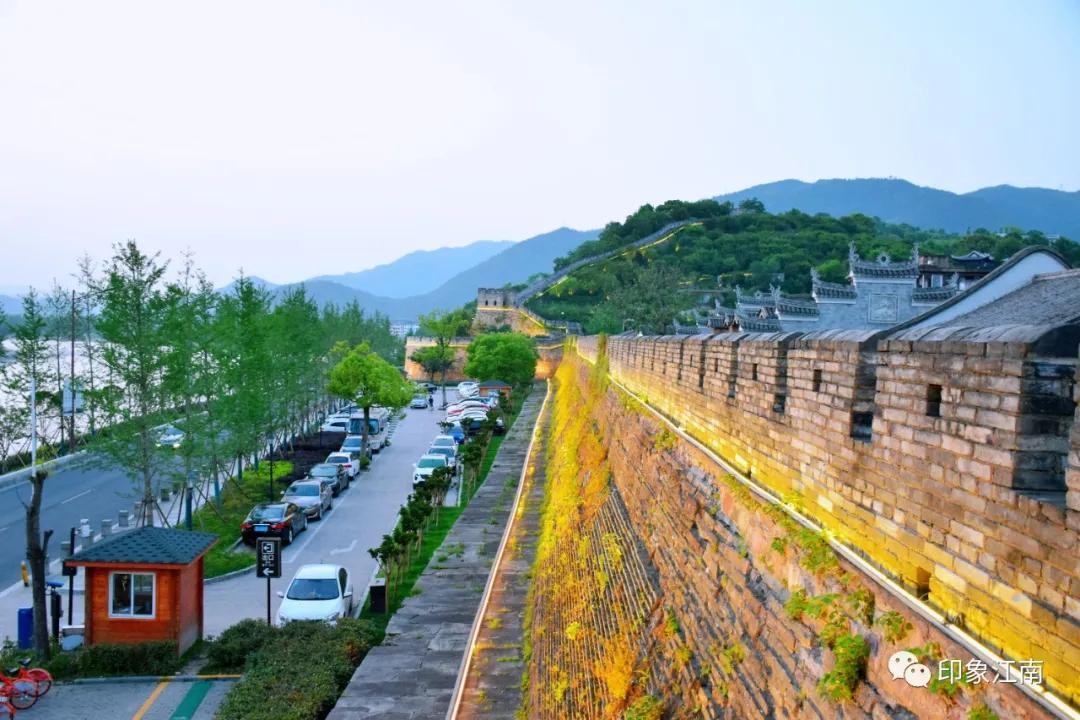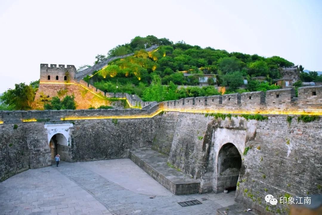 江南长城,长6公里,东起揽胜门,沿北固山山脊逶迤至烟霞阁,于山岩陡峭间直抵灵江东岸,延伸至巾山西麓,依山就势,俯视大江,矫若巨龙,雄伟壮观,尤以北部最峻,与北京八达岭长城形神俱肖,人称“江南八达岭”。