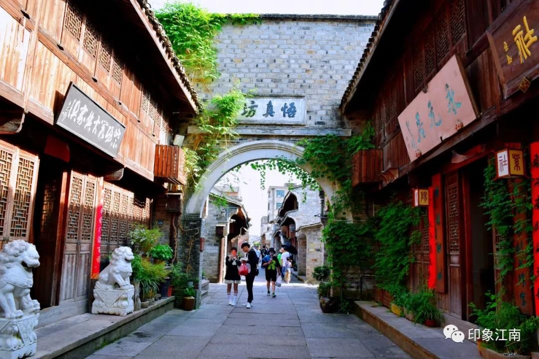 高高大大的坊墙游青砖砌成,一座座石坊下是一扇扇拱门。从兴善门进入,穿过全长1080米的紫阳街到达最北端的紫阳故里,会依次经过永靖坊、清河坊、迎仙坊、奉仙坊、悟真坊。另外,古街十字路交叉处的西大街还分布着广文坊、顺政坊、迎春坊等。坊墙有多个作用,既是人行道,又是防火墙,同时还作为地名使用,时至今日,它们依然在紫阳街上发挥着重要的作用。