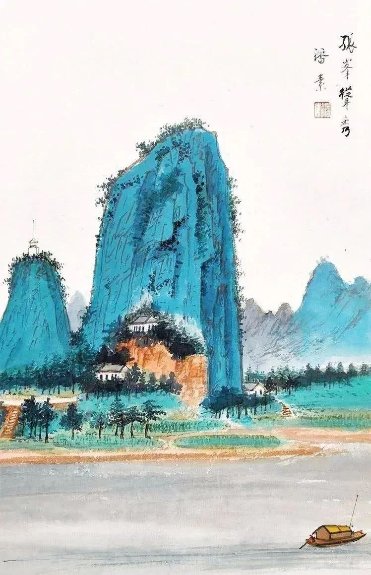 潘素所画山水画面真实壮阔,不同于传统青绿山水,她用笔大胆,勾染细腻,用淡墨、淡绿为主,色调明快清新,浓淡适宜,独具韵味。