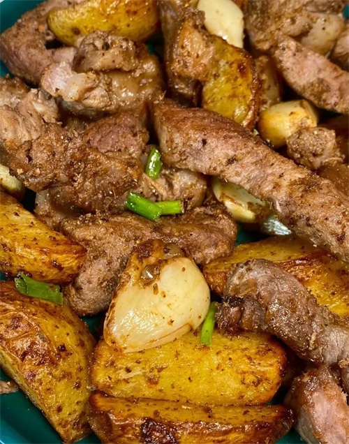 然后再放牛排进去,洋芋+牛排一起,180度,12-15分钟左右!每个人的空气炸锅脾气不一样,中间多翻面~