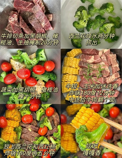 二、空气炸锅烤时蔬牛排