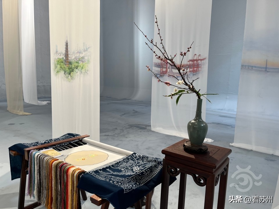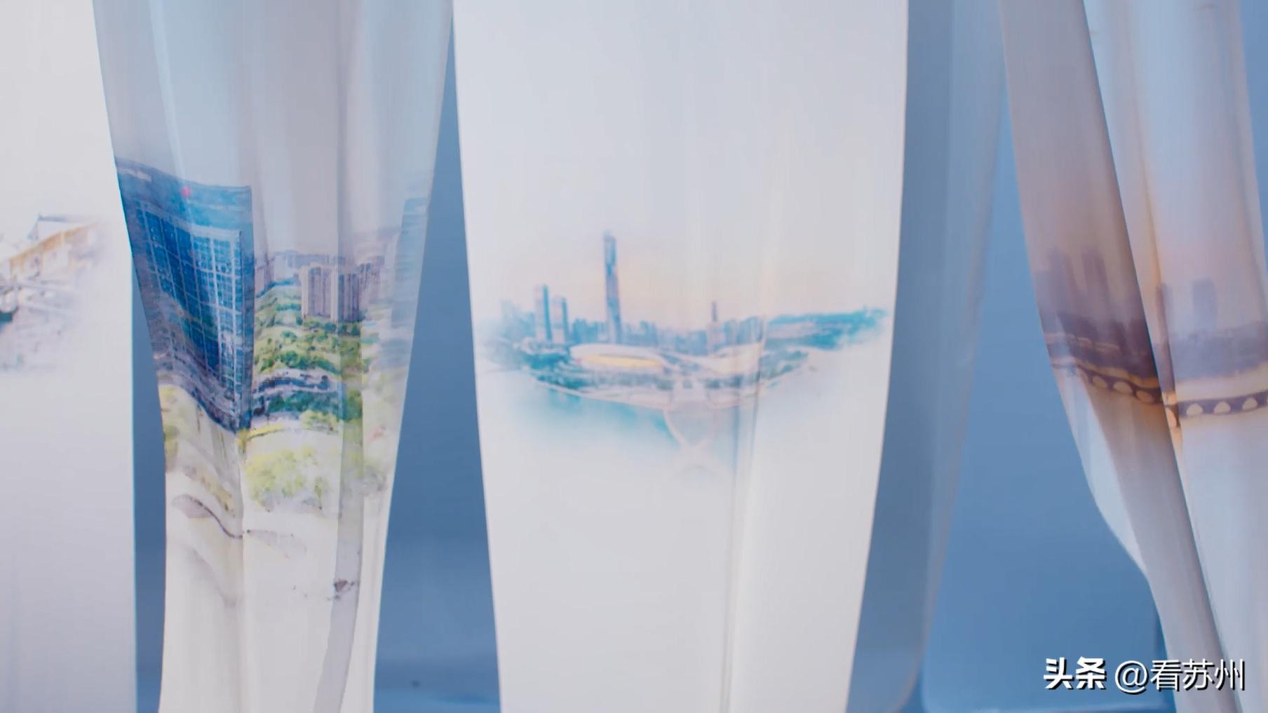 随风轻拂的帷幔上,苏州十大板块的城市绣印图案似给绣娘提供了无限想象和灵感。