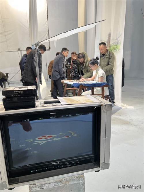 片中美术体“苏州”两字由著名美术师朱一峰设计,几易其稿;绣制则由苏绣国家级代表性传承人姚惠芬老师带领团队于百忙中倾情完成,姚惠芬青蓝相继的女儿俞君瑶亲临现场指导并完成了手替部分的拍摄;苏扇仰赖“盛风苏扇”创始人、江苏省紫金文化创意人才盛春老师设计制作;绣绷旁的苏式插花则由三千隐庐的兮月老师提供。