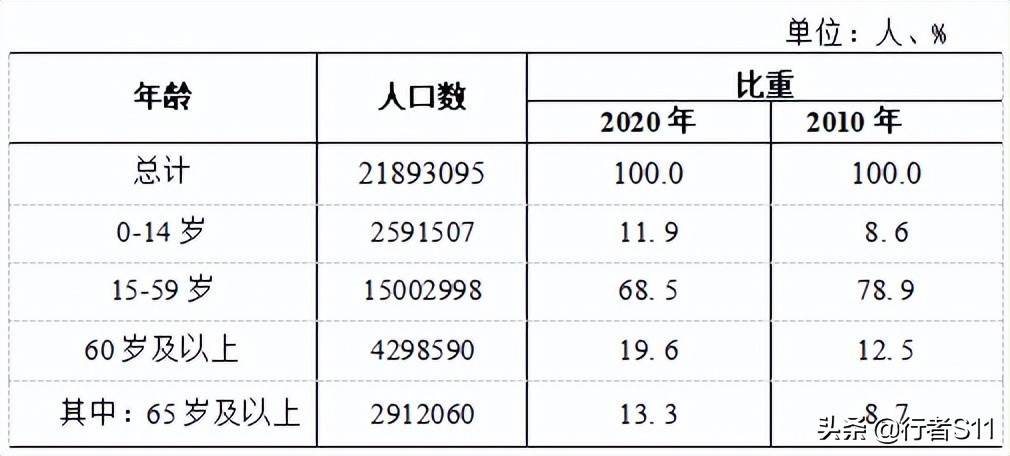 与2010年第六次全国人口普查相比,0-14岁人口的比重上升3.3个百分点,15-59岁人口的比重下降10.4个百分点,60岁及以上人口的比重上升7.1个百分点,65岁及以上人口的比重上升4.6个百分点。