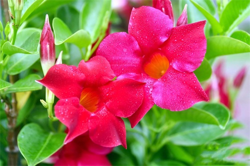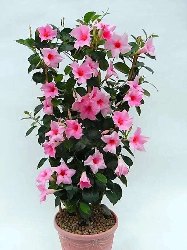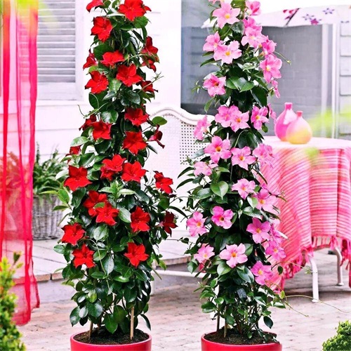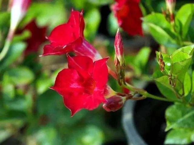 红蝉花比飘香藤花稍小,花瓣前端略尖,且开花性能好,花量大。