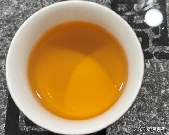 正山小种经过熏制使得茶叶乌黑油亮,但是泡成汤水后,颜色为深琥珀色,通透清澈。汤水闻着香气浓郁,喝起来滋味纯正,香醇可口,是经典红茶的味道。
