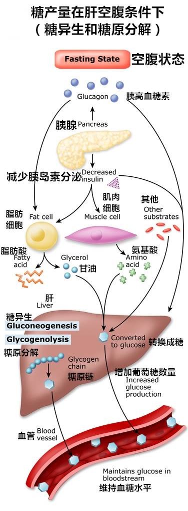 这些激素会引起肝脏里的糖原储备转化为葡萄糖并进入血液,这个过程被称为糖原分解。