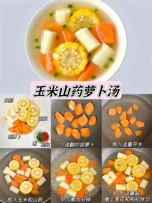 金黄玉米、雪白山药、橙红胡萝卜……这道汤品以其绚丽的色彩和丰富的营养吸引了无数食客的眼球。它不仅美味可口,更蕴含了多种对人体有益的营养素。减肥期间食用这道汤品,既能满足身体对营养的需求,又能享受视觉与味觉的双重盛宴。