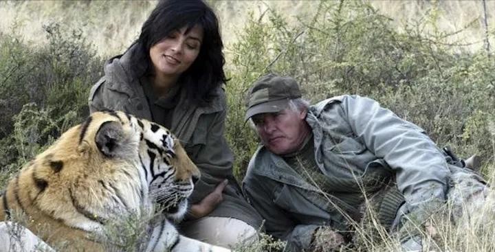 《与虎同行》结尾,两只老虎罗恩与朱莉已经被成功野化,跟瓦提与驯兽师大卫做着最后的告别。