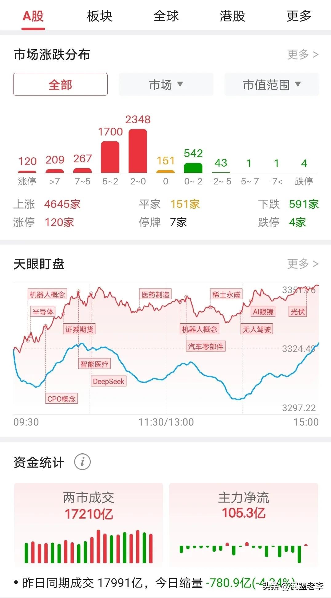 从板块上看,机器人概念股再度爆发,长盛轴承等多股创历史新高,芯片股震荡走高,韦尔股份涨停,deepseek、算力等方向迎来修复,平治信息等10余股涨停。板块方面,人形机器人、半导体、可控核聚变、算力等板块涨幅居前,银行等少数板块下跌。