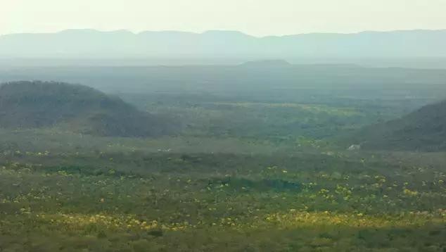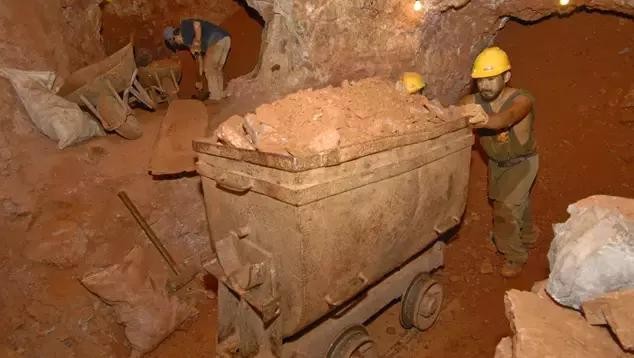 照片中间位置上的矿洞,隐匿在树木林立的山峰之间,几乎看不见。