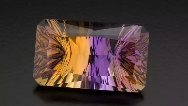 这种透明石英兼有紫水晶和黄水晶的颜色,因此被称为紫黄晶或紫水晶-黄水晶。