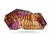 亭部凹面的设计成就了这颗 27.50 克拉美艳动人的 紫黄晶。 创意宝石切割师有时运用凹刻面,令宝石呈现出颇具震撼力的外观。 摄影:Robert Weldon(罗伯特·韦尔登)/GIA,由 Minerales y Metales del Oriente 矿业公司友情提供。