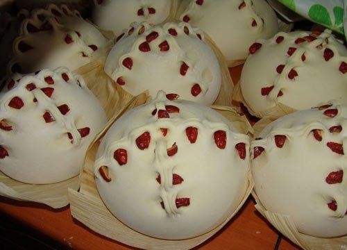 材料和制作:大枣饽饽的制作原料主要包括面粉、大枣、酵母粉和牛奶等。制作过程中,面团需要充分揉搓,以获得劲道的硬面团,便于成型。经过初步发酵后,将面坯放置在温暖的地方进行二次发酵,然后上锅蒸熟即可。