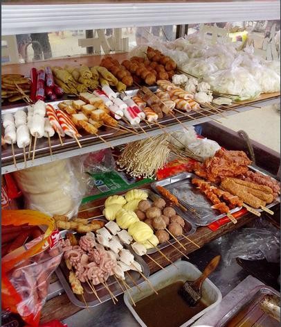 材料和制作:炸甩的制作材料包括猪肉、香肠、鸡脯肉、火腿肠、贡丸、蛋卷、豆腐卷、蘑菇、大白菜、油菜、鱿鱼、馒头和玉米饼等。这些食材会被串在竹签上,然后放入油锅中炸熟,捞出后沥干油份,最后刷上酱料即可食用。