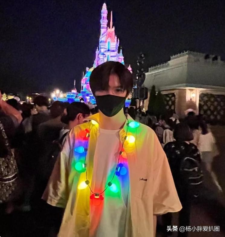 照片中,张慕童穿着一件浅色半袖,身上挂着彩灯,正站在人群之中,打扮得简单却不失帅气。看张慕童身后的背景是迪士尼乐园,想来他是特意前去那里庆生。