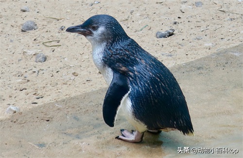 蓝企鹅,别称小蓝企鹅,被认为是企鹅界中个头最不起眼的成员,一般身材仅高达43厘米,体重大约1千克,其中雄性略胜雌性一筹于体型上。这种企鹅穿戴的是独一无二的蓝色羽衣,也正因为这件天蓝色的外衣,它们得名为小蓝企鹅。头部和背部展示着深邃的靛蓝色,耳附近则呈现青灰色调,而腹部则是纯净的白色。它们的鳍肢外侧也是靛蓝,而内侧则是洁白的。深灰黑色的喙长3到4厘米,脚反天面白而脚掌和蹼则是黑色的。