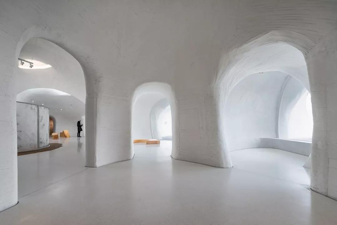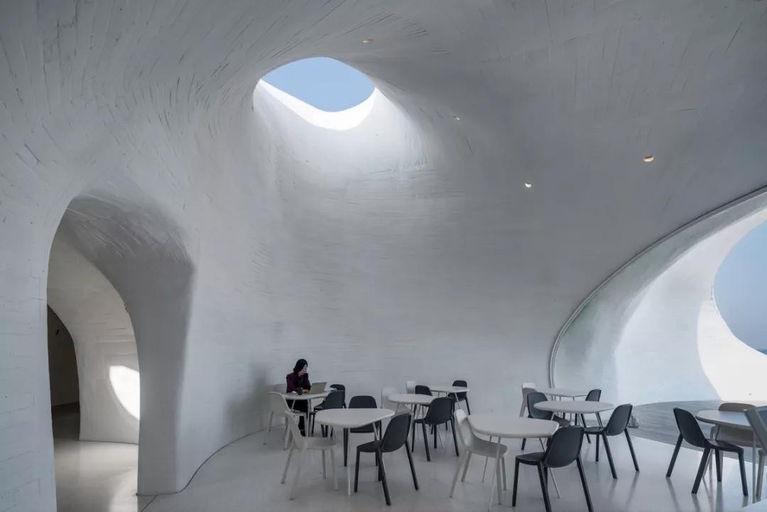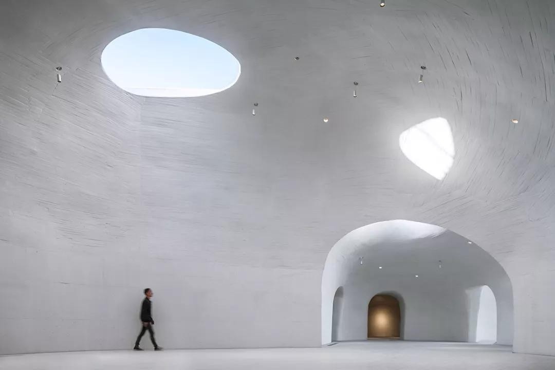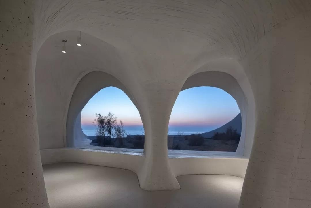 受启发于孩童们在海边挖沙的游戏,建筑师尝试在沙丘里“挖掘”创造出形态各异又互相连接的一些“洞穴”——这也是人类最原始的居住形态和最早的艺术创作场所。