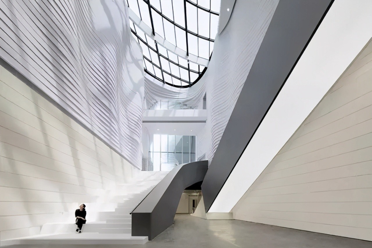 鄂尔多斯美术馆位于内蒙古鄂尔多斯市东胜区,艺术馆建立在沙丘之上,以半围合的广场为代表性架构,建筑物内部空间连续多变造成半开式结构的变化,可以从建筑物内部就能够看到外面的自然风光,让游客在观赏艺术品的同时也能够欣赏到美丽的自然风光。