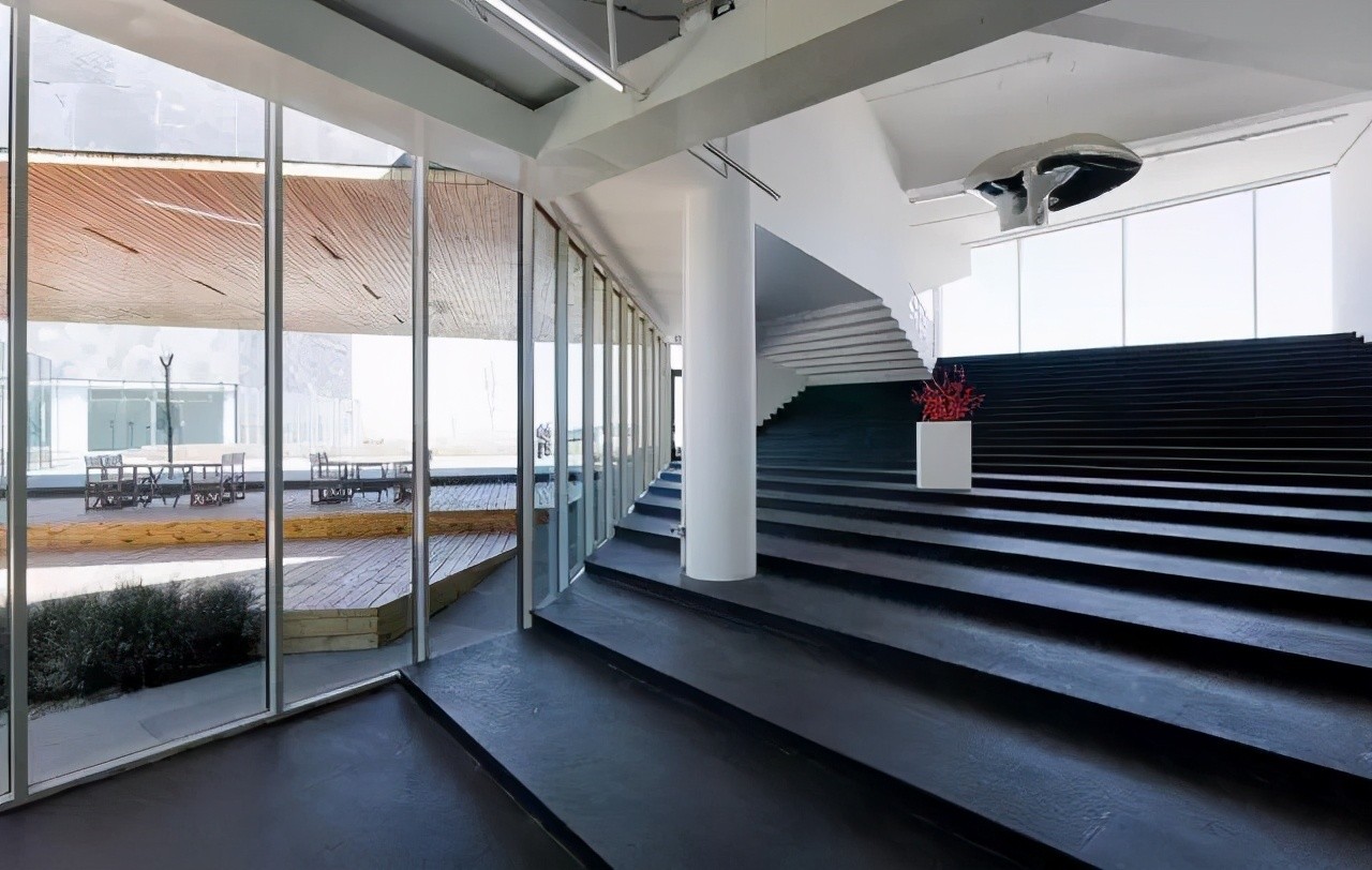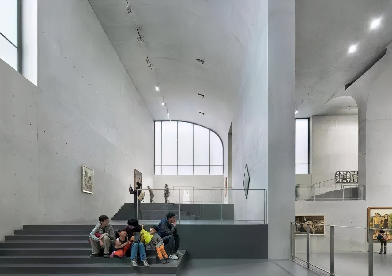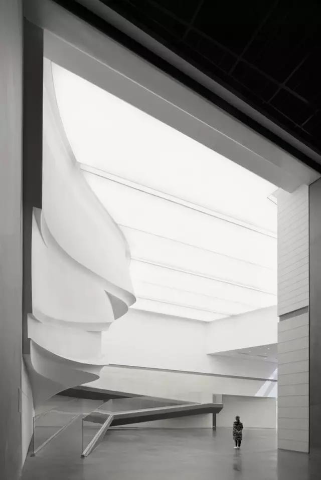 建筑师希望打破当代艺术同普通公众的距离,营造出一个欢迎访客进入的美术馆, 一层布置非展陈的休闲功能,是希望这里能够成为一个社区的枢纽、吸引人们的相聚之所,使公众可以自然而然地感知艺术。