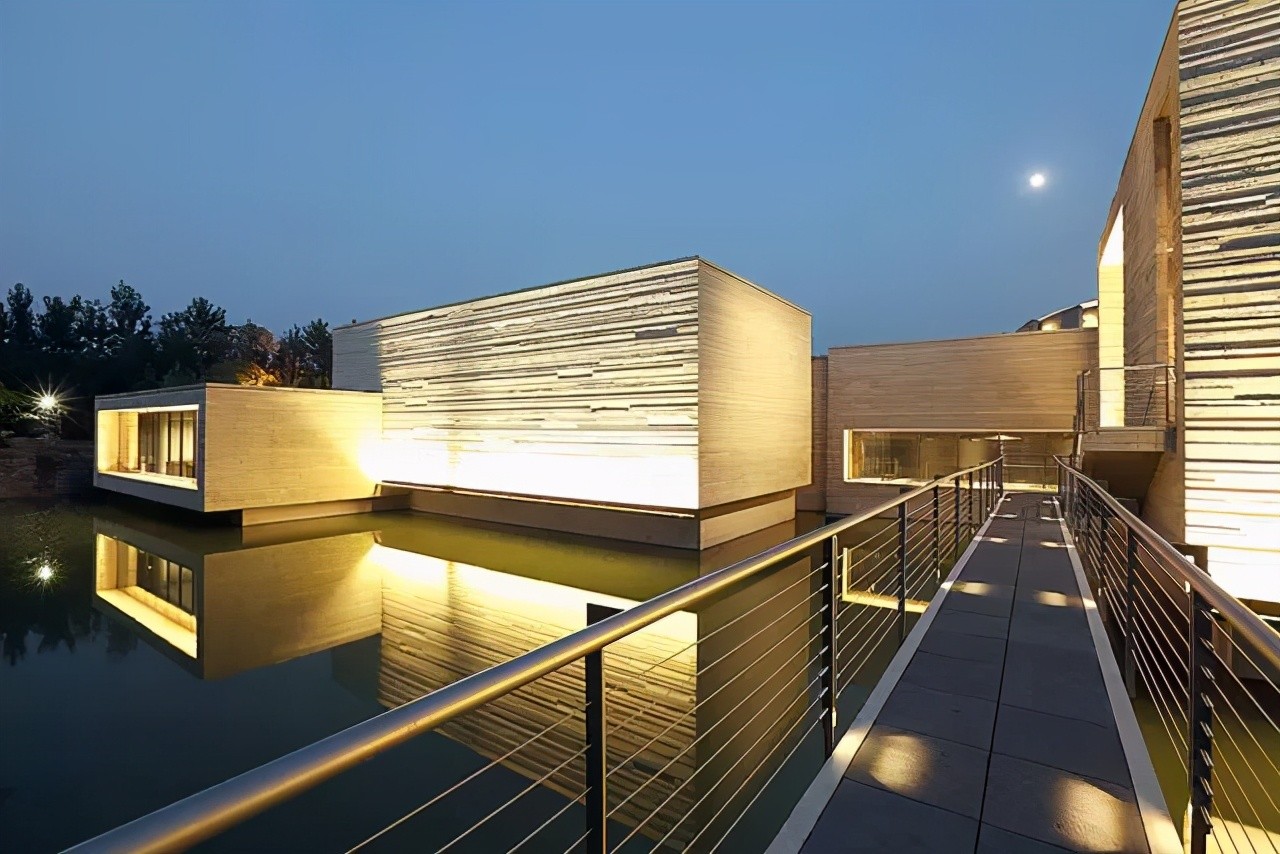 红砖美术馆以它独特的红色砖块建造而闻名,占地面积近二万平米,其中包括8000平米的室外园林。美术馆采用红色砖块作为基本元素,辅以部分建筑上青砖的使用,打造出一座配备有当代山水庭院的园林式美术馆。