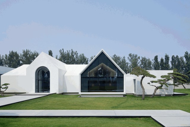 松美术馆是由华谊兄弟创始人王中军的跑马场改造而成,笔直的通道与虬曲的古松掩映着一座白色石块筑成的中式建筑。长达365米的院子中,199棵形态各异的古松翠柏共同构成一种苍劲的人文景观,“松”也成为了这里的标志。