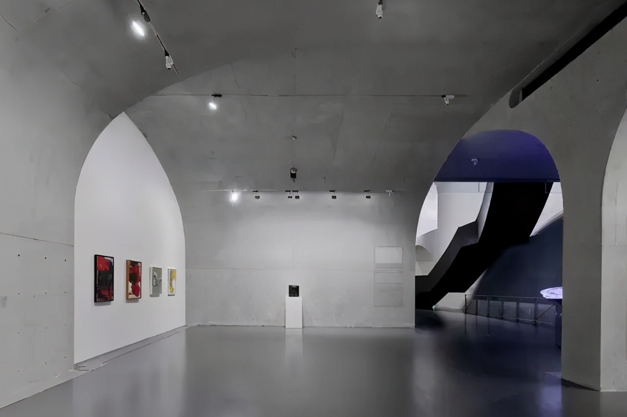 中国内地收藏家刘益谦、王薇夫妇创办的私立龙美术馆龙美术馆是以“伞拱”悬挑结构自由搭配而成的场馆。其场馆主要是以灰色的混泥土浇筑而成,充满了工业时代特有的情怀,给人们一种穿越时空的年代感。
