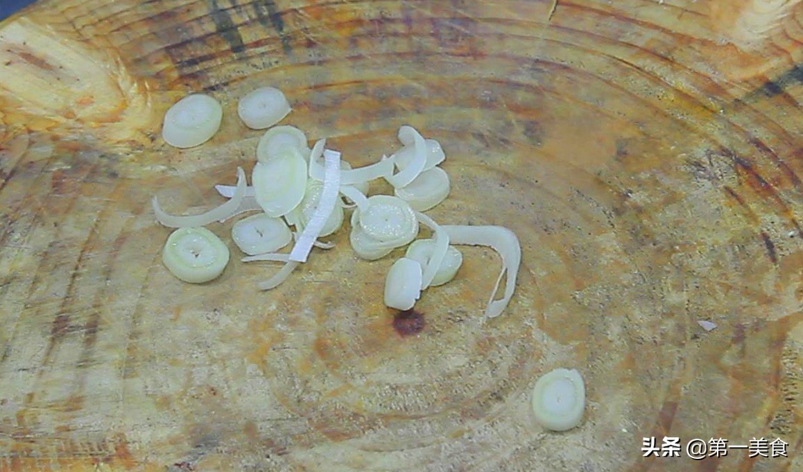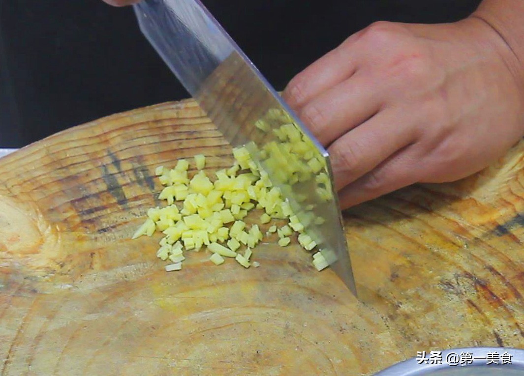 准备生姜4-5片,生姜切成碎末和大葱放在一起备用。