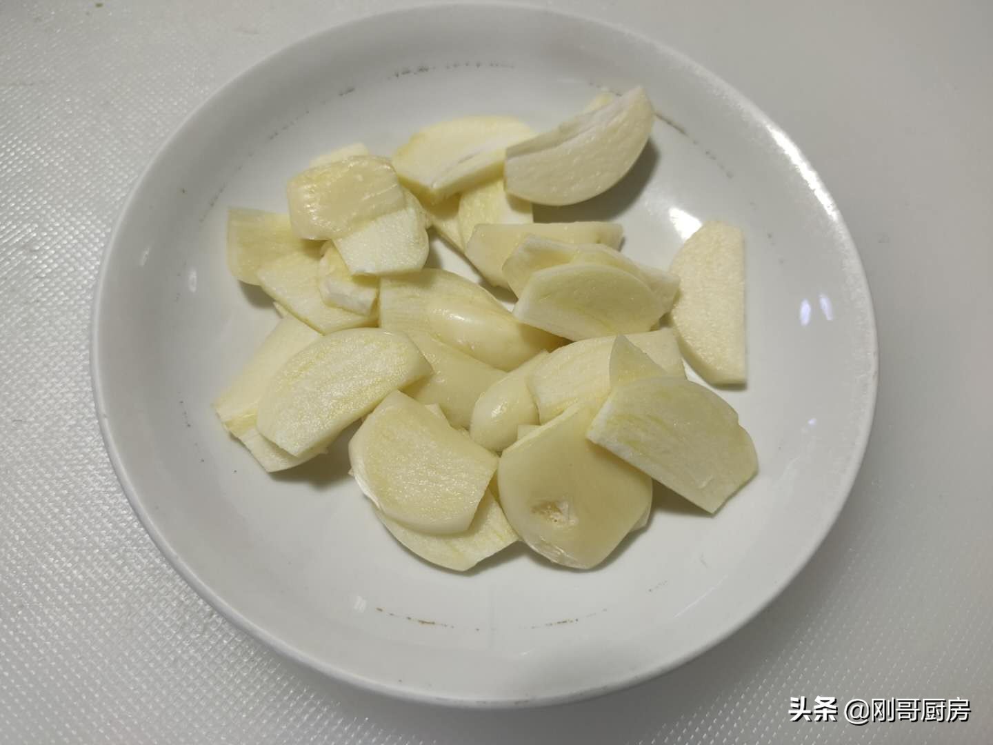 3、大蒜切片,放入小碟中备用。