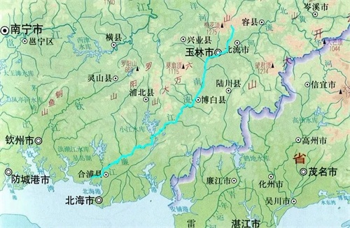 现在我们来说说南流江的二千年历史。南流江,位于广西壮族自治区东南部,是广西独流入海的,唯一向南流的第一大河,发源于玉林市北流市大容山南侧,自北向南流,故名南流江。流经北流市、玉林市玉州区、玉林市福绵区、博白县、钦州市浦北县、北海市合浦县6县(市)区,于合浦县注入北部湾的廉州湾,河长287公里,流域面积8635平方公里。