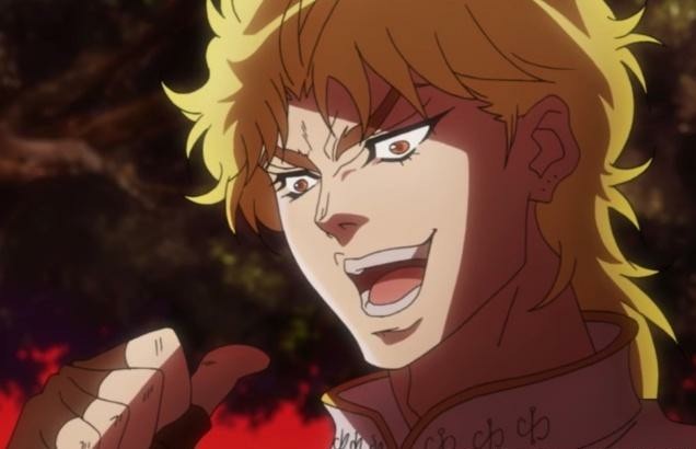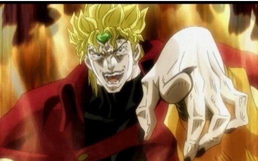 “ko no dio da”,这句话原本是DIO为了搞大乔心态,强吻了艾莉娜,并且说出了这句名台词“你的初吻对象不是JOJO,是我DIO哒”,配合着DIO魔性的表情和声音,让这句话听着也特别带感。从这之后,这个梗也被观众运用到各种动漫各种场景中,当问到对方是谁的时候,你可以用DIO的语气大声喊出:是我DIO哒!