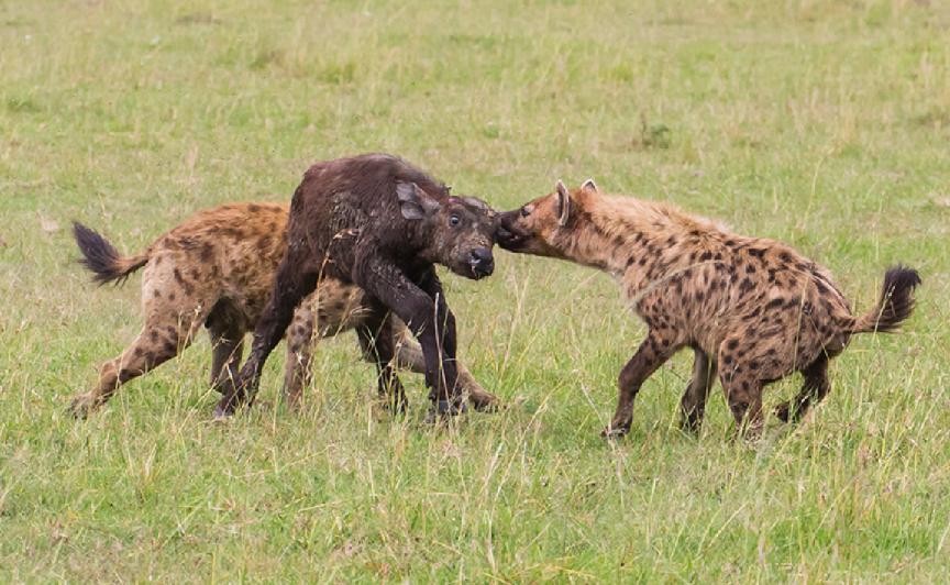 此外,斑鬣狗极少单打独斗。即便偶尔逃脱了一只,还有更多同伴马上展开新一轮攻势。在这种绝境之中,猎物别无选择,只能任人宰割。