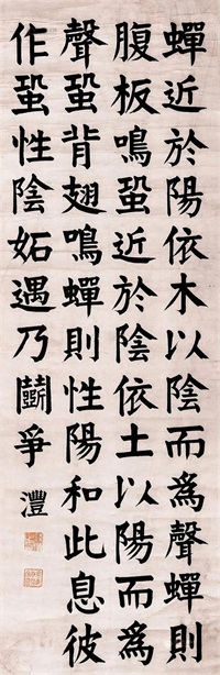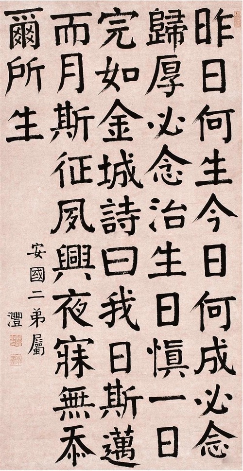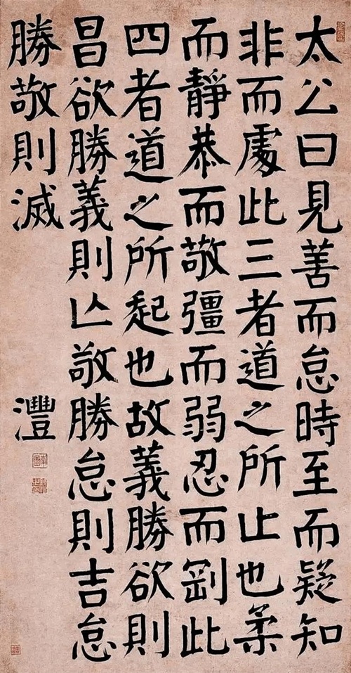 钱沣的书法,特别是他的颜体楷书,堪称是对颜真卿风格的最忠实传承。颜真卿的楷书以其雄浑的气势、厚重的笔触和独特的结体而著称,这些特点在钱沣的作品中得到了完美的再现。钱沣在临摹颜真卿书法时,不仅注重字形的准确,更在笔法和气韵上下足了功夫,使得他的书法在形似的基础上,更增添了颜体所特有的神韵。