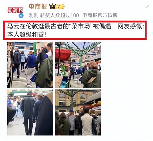 7月份的时候,马云现身伦敦一个最古老的“菜市场”,当时的马云也是独自一人,打扮低调没有戴口罩,在市场上闲逛。