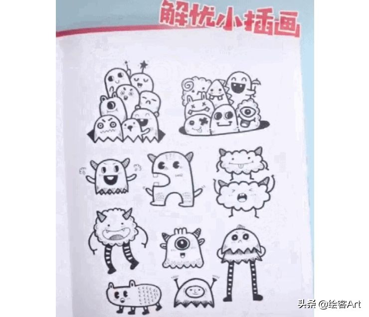 今天给大家分享一波涂鸦风简笔画教程,非常简单,4个步骤就能画出一个小萌物。拿来装饰手账日记本、制作各种手绘小卡片都超棒der~