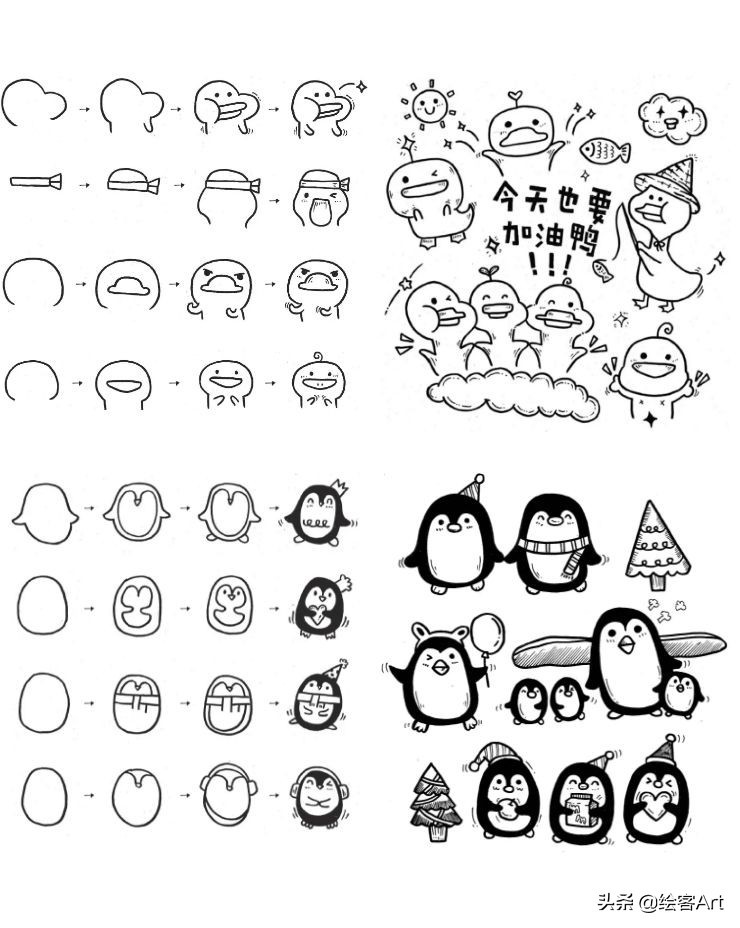 每个简笔画教程后面还有拓展练习,展示了更多同类作品以及插画内容,举一反三带初学者快速进阶!