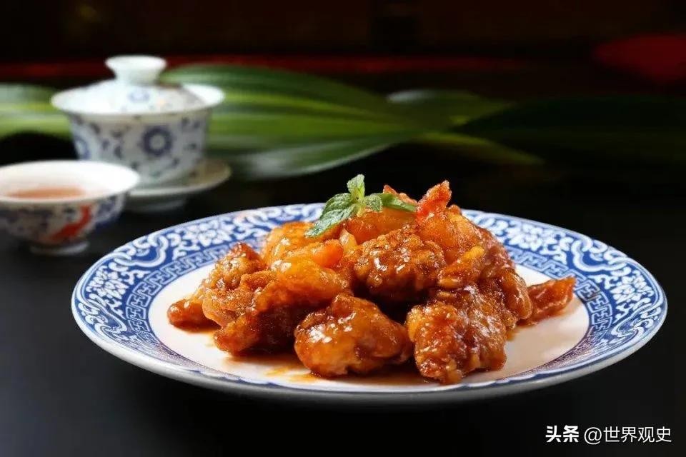 7、咕噜肉(Sweet and Sour Pork )[1],又名古老肉,是一道广东的传统特色名菜。此菜始于清代。当时在广州市的许多外国人都非常喜欢食用中国菜,尤其喜欢吃糖醋排骨,但吃时不习惯吐骨。