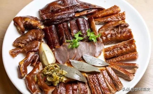 6、潮汕卤味是一道色香味俱全的地方传统名肴,属于粤菜系潮州菜,是粤菜的重要组成部分。其制法,是以红糖、水、盐、豆酱(或酱油)、葱头、南姜、桂皮、八角、茴香等十几种天然香料进行“打卤”。将鹅、鸭或猪脚之类浸入卤锅,科学用火卤制。
