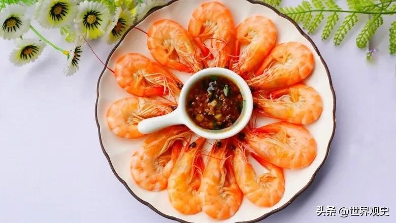 8、白灼虾是广东省广州地区一道汉族传统名菜,属粤菜系。主要食材是虾,主要烹饪工艺是白灼,"白灼"二字指的是将原滋原味的鲜虾直接放进清水里煮食。广州人喜欢用白灼之法来做虾,为的是保持其鲜、甜、嫩的原味,然后将虾剥壳蘸酱汁而食。