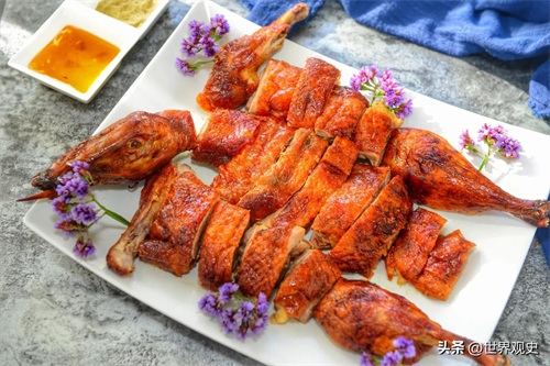 2、红烧乳鸽,是广东省传统名菜之一,属于粤菜系。主要材料有乳鸽,特点是皮脆、肉滑、骨嫩、多汁。