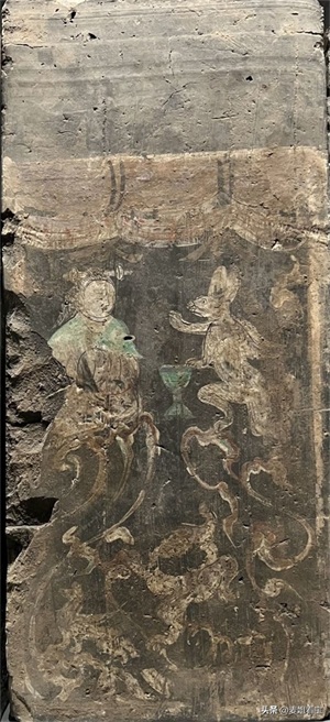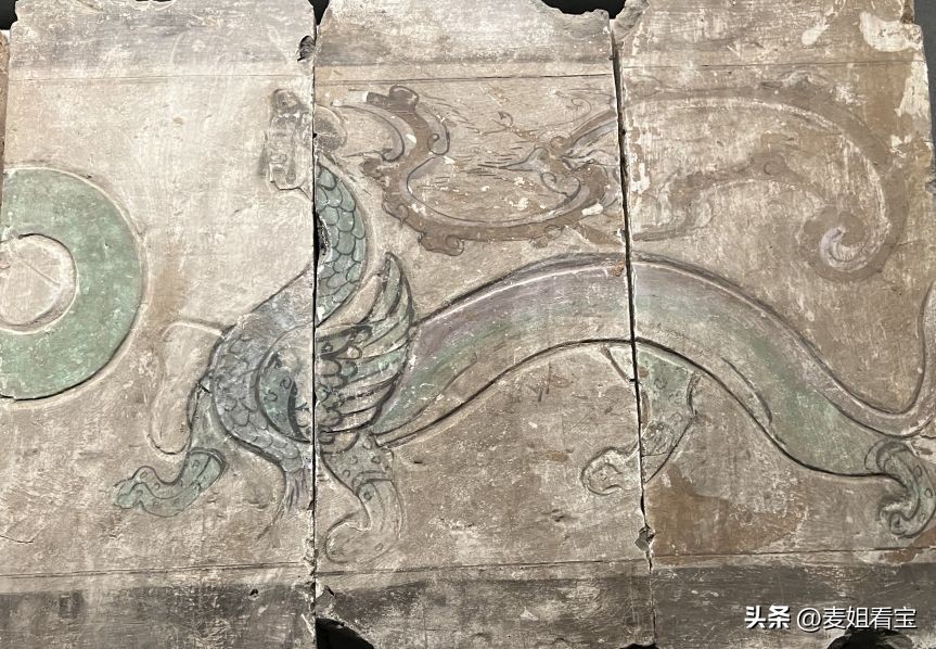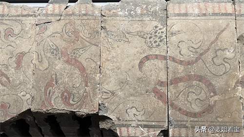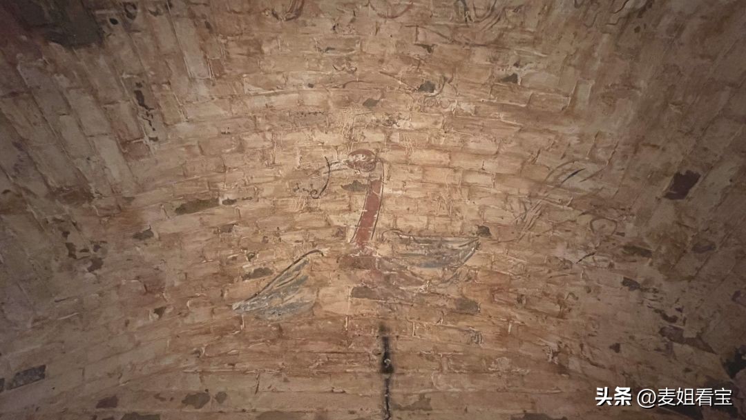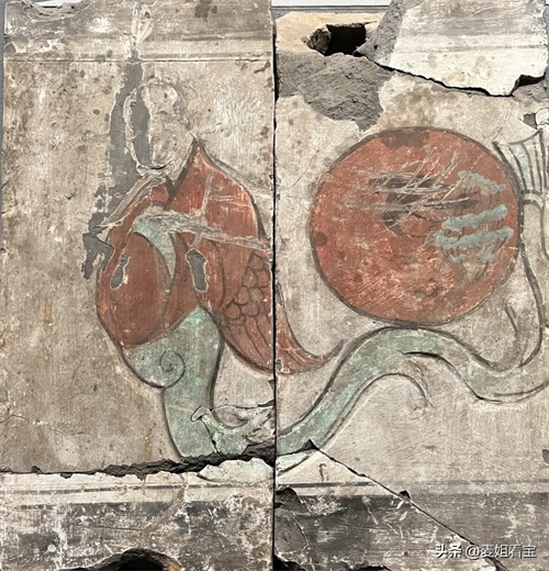 墓被盗掘,部分壁画砖发现于盗洞的扰士中,壁画砖的形制与浅井头西汉壁画墓墓砖相同为亚腰梯形,有壁画的一面长0.51米、宽0.227~0.235米,厚0.205米壁画砖现存6块,面积约为1.2平方米,位于主室前半部墓顶平脊部位内容有伏羲、凤鸟、神兽、神人等。